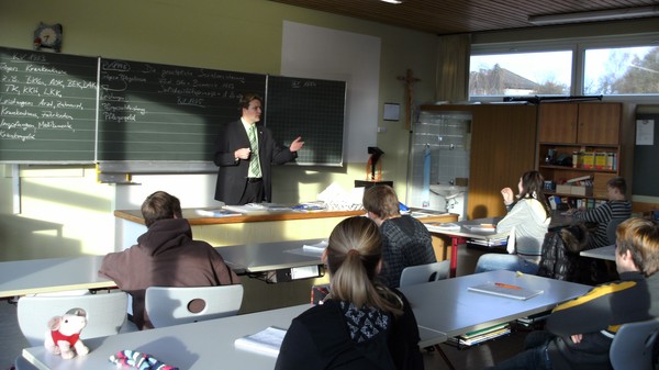 In der 9. Klasse haben die 17 Schülerinnen und Schüler, die kurz zuvor schon ein professionelles Bewerbertraining absolviert hatte, erhielten durch Florian Naumann von der DAK Regensburg derweil Einblick in das Sozialversicherungssystem und konnte sich am Ende des Tages selbst ausrechnen, was vom sauer verdienten „1. Gehalt“ als Auszubildender einmal unterm Strich im eigenen Geldbeutel bleiben wird.