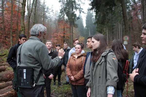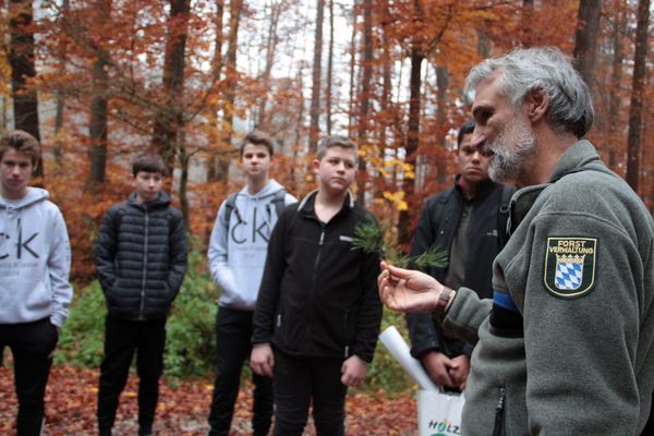 Laut Werner Lang sollte man möglichst viele Baumarten pflanzen. Keiner wisse schließlich, wie tolerant die einzelnen Baumarten gegenüber dem veränderten Klima sein werden. Bäume wachsen langsam – diejenigen, die unsere Nachfahren in 100 Jahren abholzen wollen, müssen jetzt gepflanzt werden. „Wir haben aber keine Zeit mehr jahrelang Versuche durchzuführen und neue Baumarten zu züchten. Zudem hängt es von politischen Entscheidungen ab, wie schnell sich das Klima verändern wird“, informierte er die Schülerinnen und Schüler. „Wir werden zukünftig mit neuen Schädlingen und Pilzen konfrontiert werden. Immer häufiger haben wir es mit dem Eichenprozessionsspinner zu tun, der aber forstwirtschaftlich nicht relevant ist. Ein Pilz macht seit mehreren Jahren den Eschen zu schaffen – sie verlieren ihre Blätter und sterben ab. Buchen und Eichen werden gerne zu selbst angeflogenen Bäumen gepflanzt.“