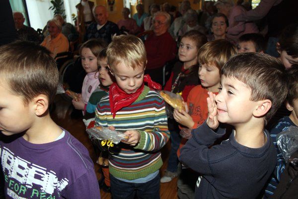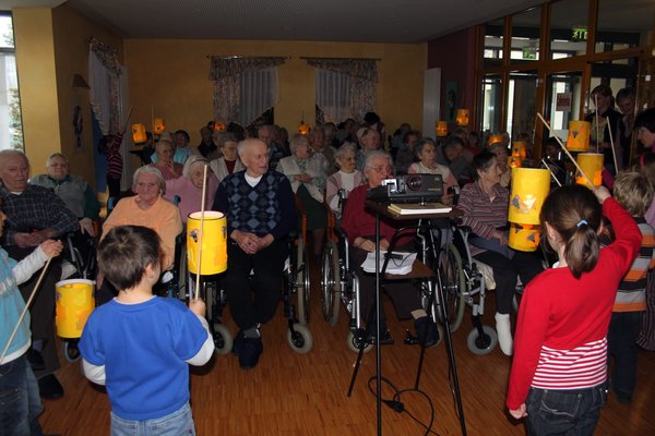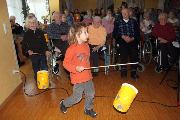 Nicht nur viel Applaus war dafür ihr Dank, sondern auch die von den Bewohnern selbst gebackene „Martinsganserln, die ihnen Oswald Weiß“ überreichte. „Das war wieder eine tolle Überraschung, die uns an unsere eigene Kindheit erinnerte“, lobte Heimleiterin Lydia Brandl zusammen mit Sozialbetreuerin Elke Augsberger die Aktion. Zur Stärkung für den Heimweg bekamen die Kindergartenkinder außerdem wahlweise warmen Kaba oder kühlen Saft.