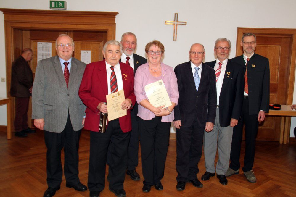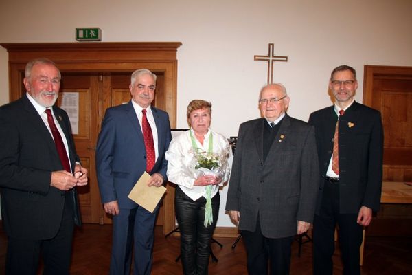 Dann wurden 33 Sängerinnen und Sänger mit Urkunden und Ehrennadeln für 10 bis 65 Jahre „Singen im Chor“ ausgezeichnet. Fünf wurden außerdem von Herbert Kick, dem Ehrenvorsitzenden des Sängerkreises Nordoberpfalz für ganz besondere Verdienste um das Chorwesen geehrt: für 40 Jahre „Singen im Chor“, der 1. Vorsitzende des MGV Johannisberg Freudenberg Klaus Scholz; für 25 Jahre „Chorleitung“ Ehrenchorleiter Franz Hanauska vom MC Haselmühl-Kümmersbruck; für 70 Jahre „Singen im Chor“ Johann Hagerer vom MGV Edelweiß 1919 Kürmreuth und Umgebung; Ehrenvorsitzender Richard Neudecker vom GV 1925 Traßlberg und Umgebung für 65 Jahre „Singen im Chor“ sowie Rosi Hasenstab, 1. Vorsitzende des GV Liederkranz Vilseck 1908 e. V. für 50 Jahre „Singen im Chor“.