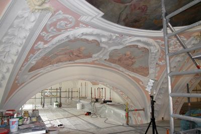 Fortschreiten der Restaurierungen von Raumschale und Ausstattung