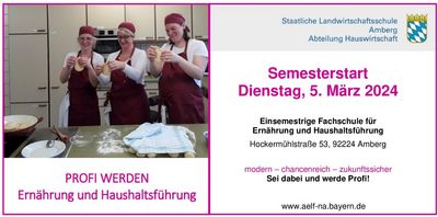 Die Landwirtschaftsschule Amberg, Abteilung Hauswirtschaft bietet Frauen und Männern eine regionale Fortbildungsmöglichkeit für Ernährung und…
