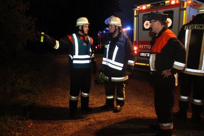 Um 18.45 Uhr heulten in Thanheim, Wolfsbach, Ensdorf und Rieden die Sirenen. „Waldunfall Nähe Rettungspunkt AS 2048, zwei Personen unter Stämmen…