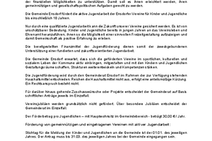 Förderrichtlinien für Ensdorfer Vereine und Festlegung von freiwillig gewährten Beträgen für eine aktive Kinder-/ und Jugendarbeit“ der Gemeinde Ensdorf vom 26.10.2023