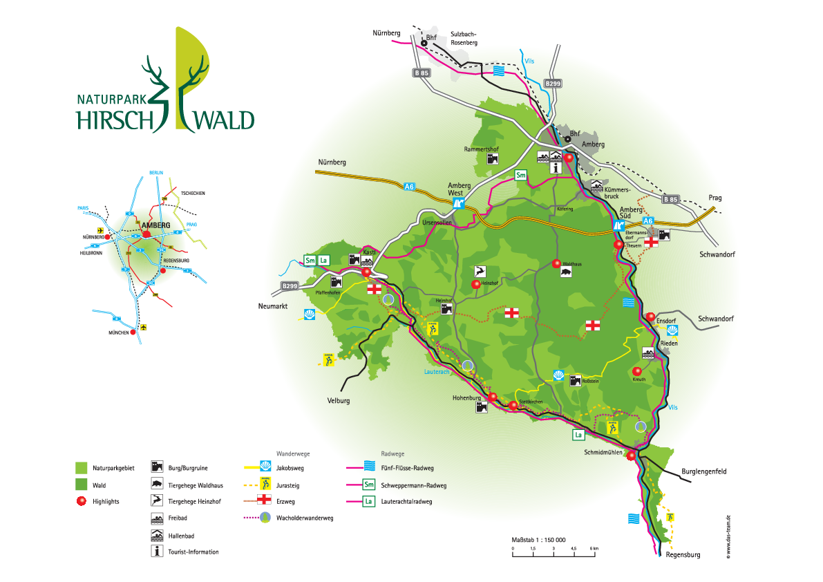 Eine E-Bike-Karte mit allen Pedelec-Touren sowie Lade- und Servicestationen finden Sie auf der Webseite des Amberg-Sulzbacher Lands.